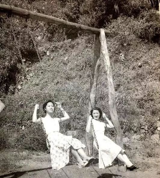 山中生活的乐趣,需要自己创造,张学良给她做了个超大的秋千。朋友来访,一起荡着玩。