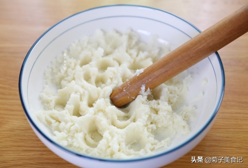 蒸好的山药取出用擀面杖捣成山药泥