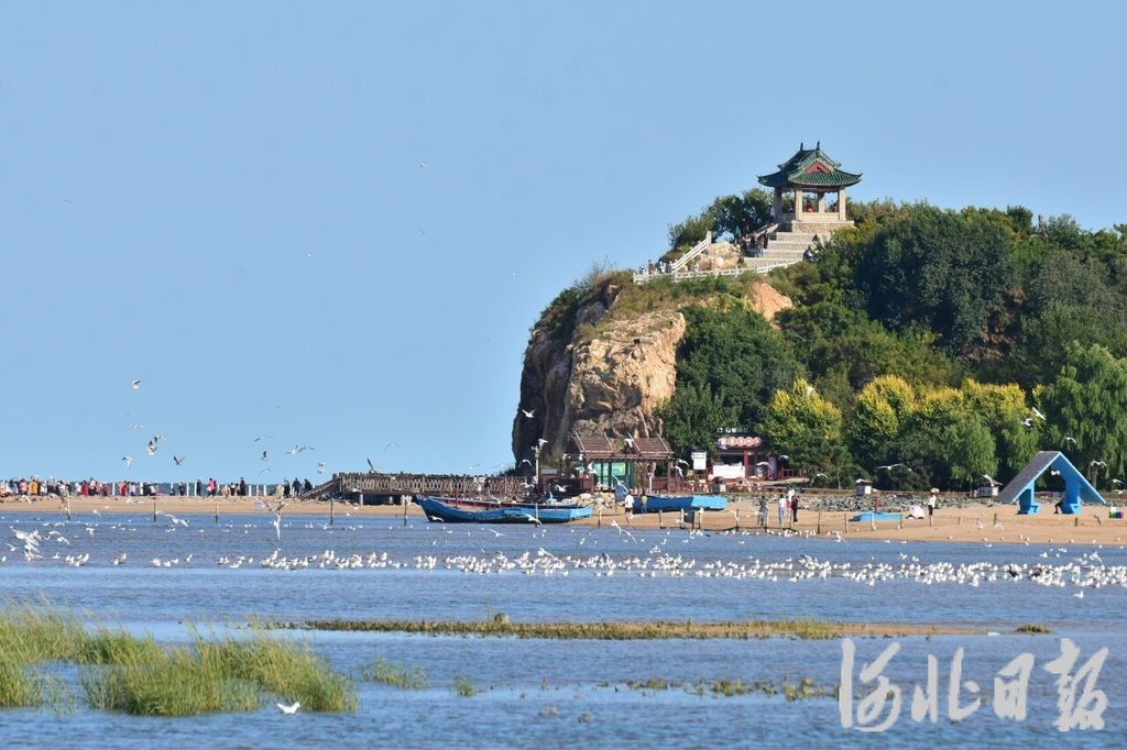 10月5日,北戴河区老虎石海上公园里游人如织。“总在手机上刷到秋游北戴河的视频,今天总算来了,确实别有一番韵味。”北京游客赵晓玮说,“人们在沙滩上牵手散步,看日出日落,和海鸥互动,感觉悠闲又惬意。”