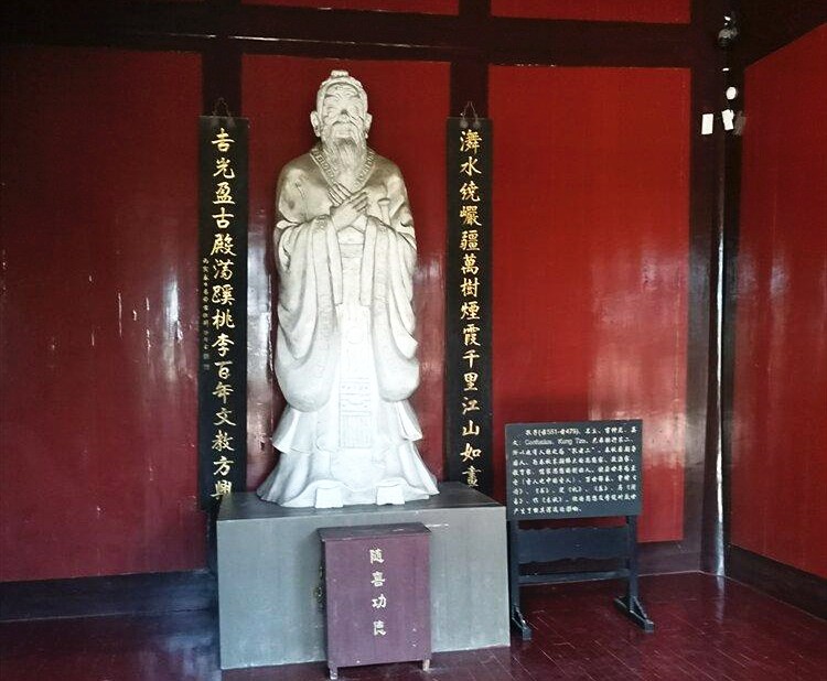 圣人殿依中和山贴崖而建,殿内供奉大成至圣先师孔子塑像。