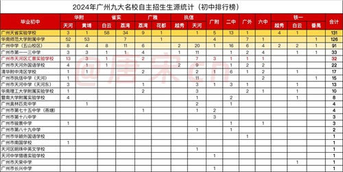 8、天河执信和暨大附中。天河执信的生源不够优质,能取得这个成绩已经不错了。他们有7个班是划片的对口生,3个班摇号产生。他们也会私下邀请尖子进他们的重点班,比如今年,我身边就有好几个优质学生收到了天执的秘密电话。暨大附中没什么好说的,教职工子弟。