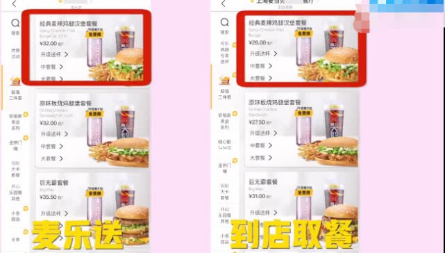 现在有许多人不愿意走出去,会选择点外卖这个方式来解决吃饭这个问题。近期有网友发现,在麦当劳app上同样的产品外送比到店取价格高。