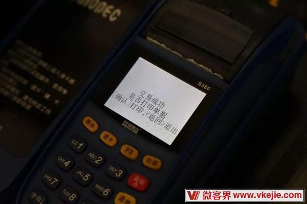 提示【交易成功】后,如需小票按“确认”键,否则按【返回】键。
