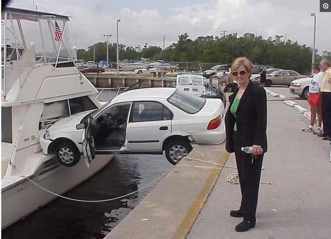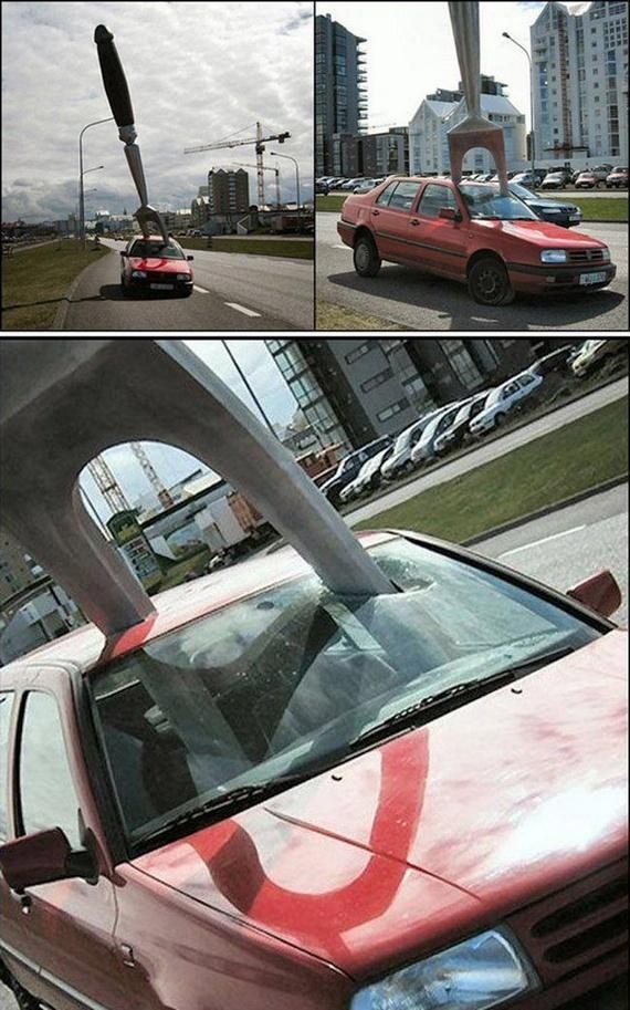第五张:刚买的车,还没开多远就撞上了路边的护栏......那就拍个照纪念一下吧!