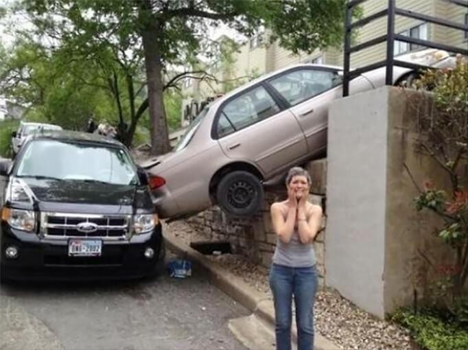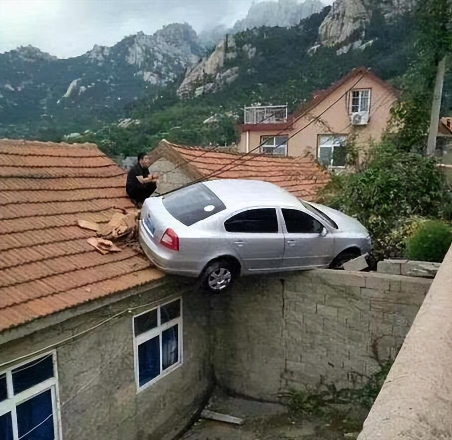 第十一张:今天算是开了眼了,汽车居然飞到了房上....