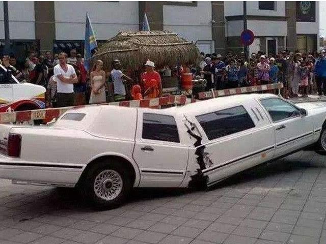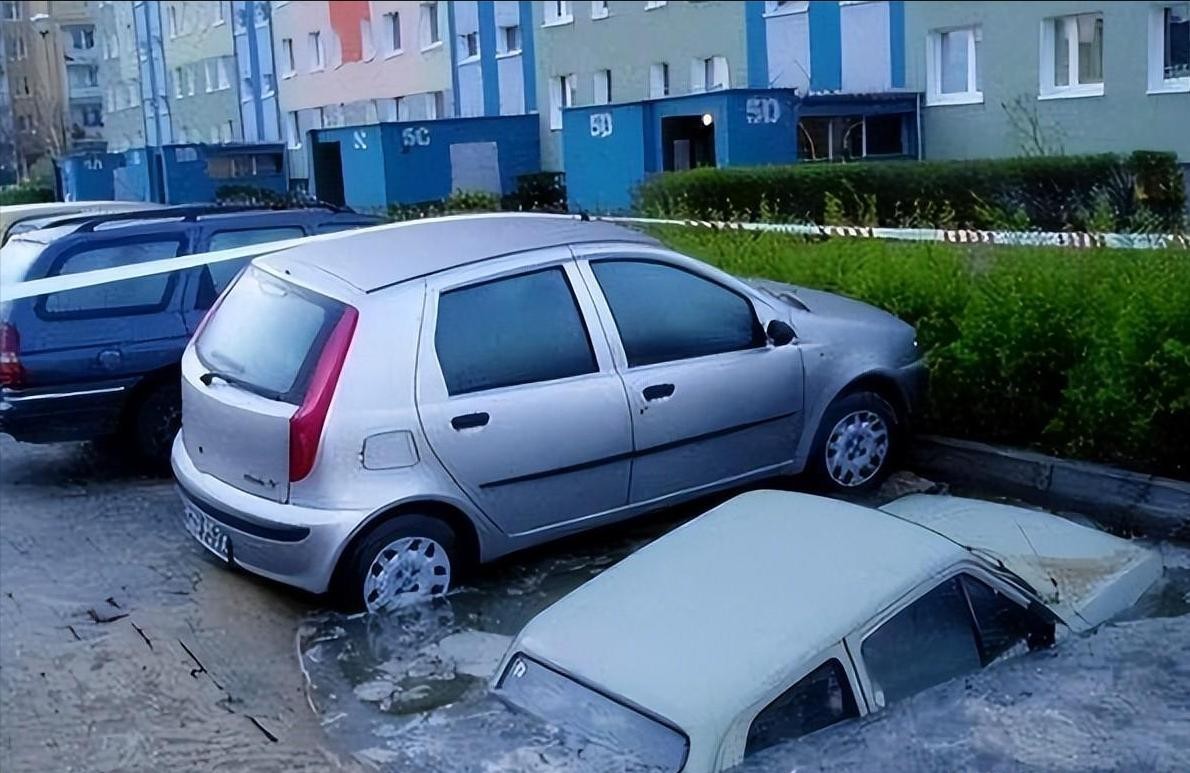 第八张:倒霉的时候喝凉水都塞牙缝.....车停的好好的路面都能塌陷!