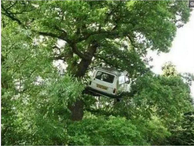 第十七张:一辆上了树的汽车.....