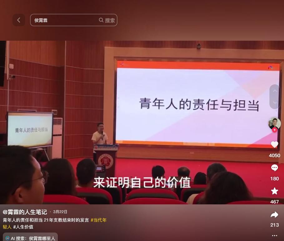 博士毕业的侯霄霖,选择到广州梅州的大山里,成了一名光荣的支教老师。