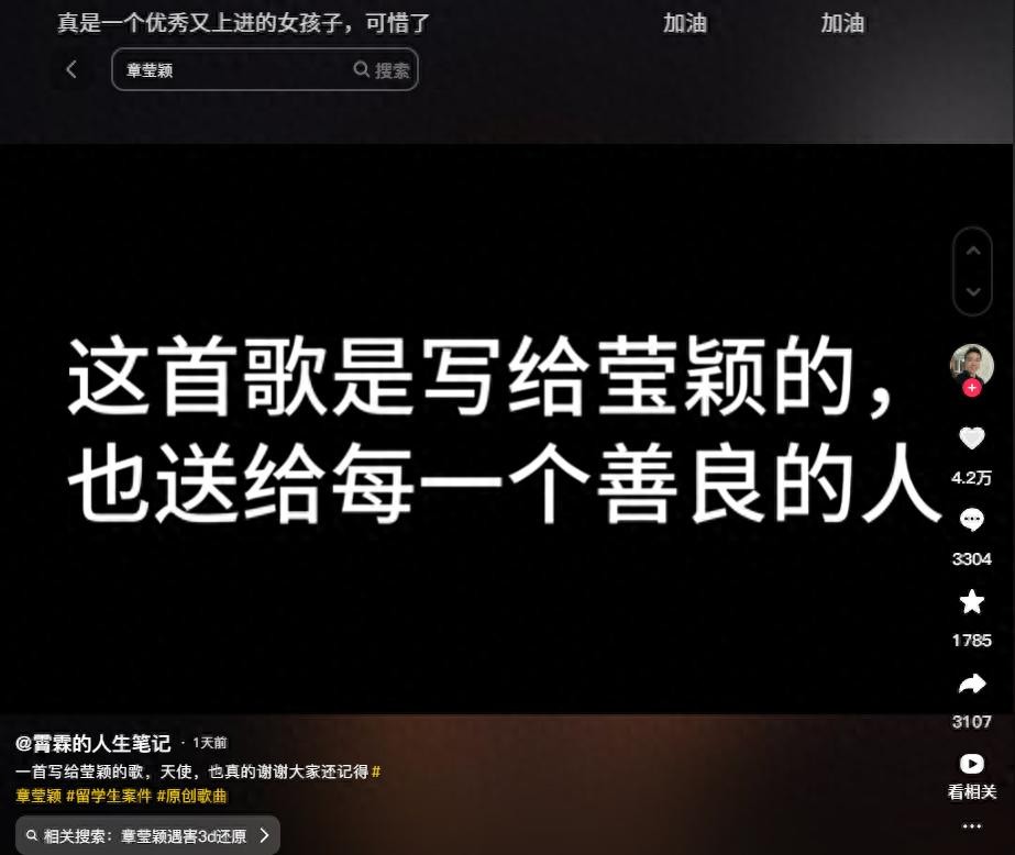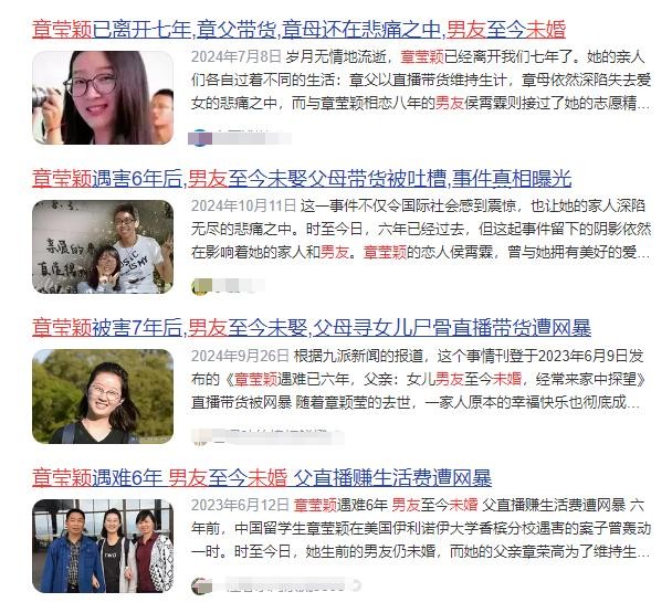 章莹颖的父母说自己后悔了,如果当时章莹颖没有出国,也许结果又不一样,他们说侯霄霖还会联系他们,但是侯霄霖的抖音账号中,却几乎不提章莹颖。