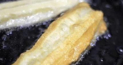 再煎炸至金黄色即可食用。炸油条有三个技巧需要掌握:夏天用冷水,冬天用温水;油温不宜太低,