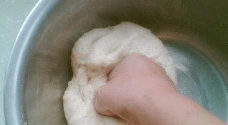 盐、鸡蛋、发酵剂一起搅拌均匀,慢慢倒入水,不断搅拌,形成面糊。然后揉成面团,要小心使用面条技术,保持面筋的弹性。接着,