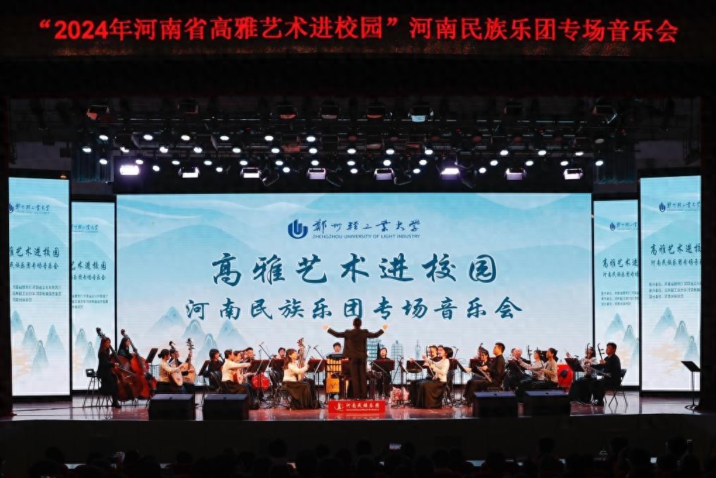 11月22日,2024年河南省高雅艺术进校园活动走进郑州轻工业大学,来自河南民族乐团的艺术家们为轻大师生奉献了一场特色鲜明、激情四溢的精彩演出。相关职能部门负责同志和师生代表在现场观看演出,1.5万余名师生通过线上直播收看演出。