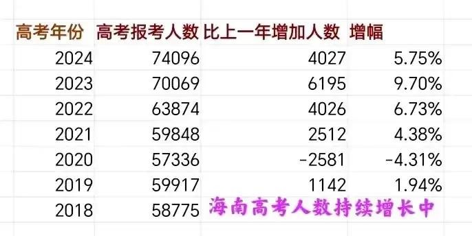 海南高考最新消息,2025年海南省高考报名人数75141人,再创新高!但增量及增幅均为2021年以来最低,这与海南省严控“中高考移民”不无关系!