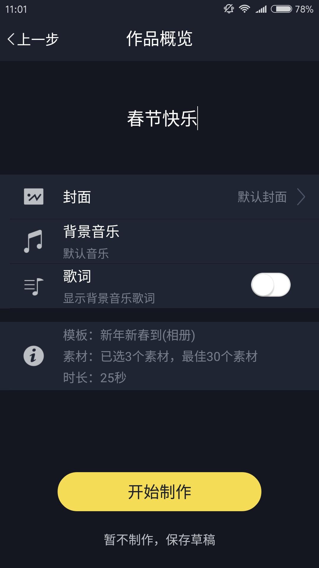 三、添加作品信息,开始制作