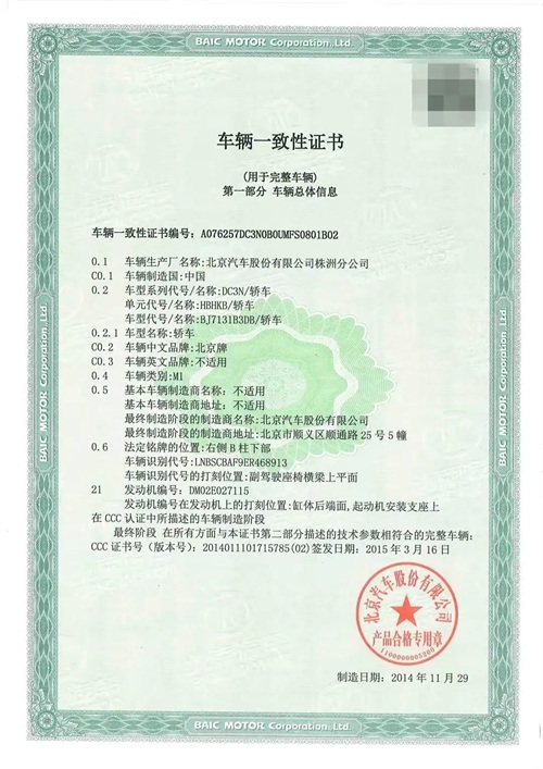 2、可以通过车辆的证书辨别