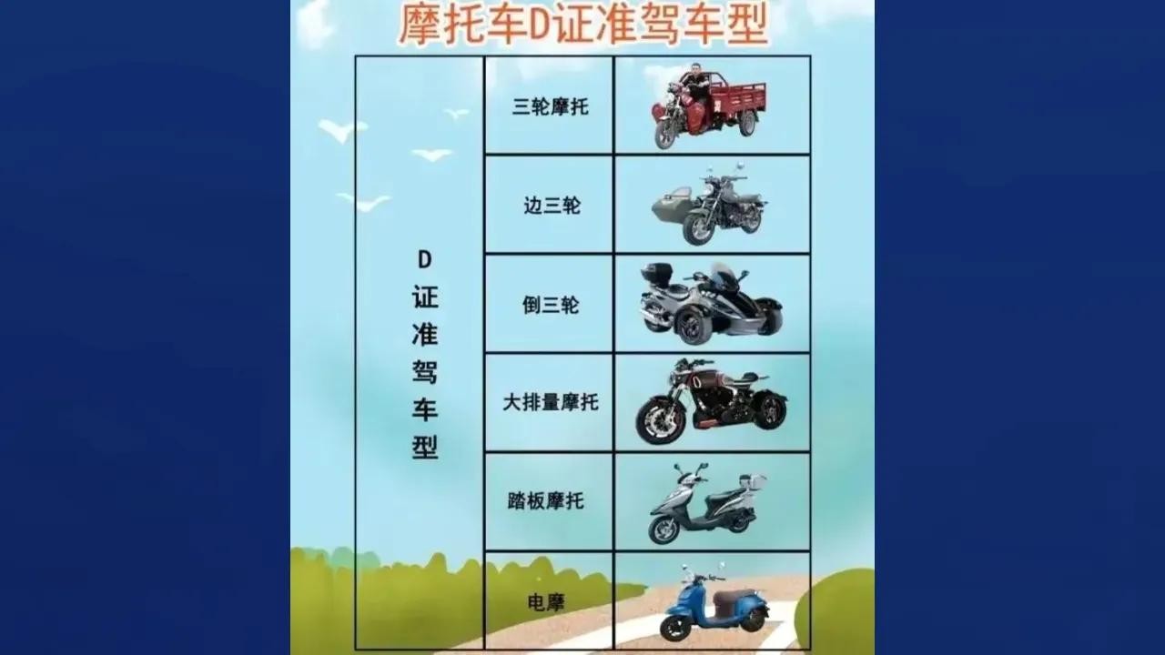 3、三轮摩托车驾驶证D,可以开敞篷的和封闭式的都行,和所有的电动两轮车。