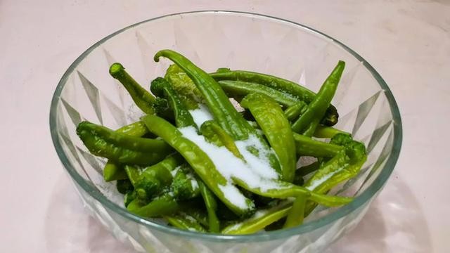 再一个就是在开水里面放一些盐,可以让我们的辣椒受热均匀,而不会让它在容器里面受到碰撞而折断。如果折断的辣椒再腌制的话,那么就存放不久。