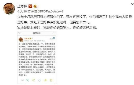 其实当时他对于肖战本来并没有太多的意见,主要是粉丝太过疯狂,影响了公共社交平台的风气。不过当时并没有太多人对汪海林的话予以重视,大部分人都认为他这是在蹭热度。