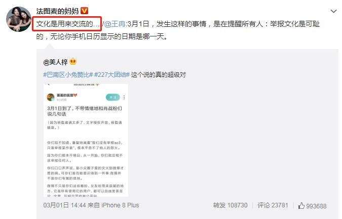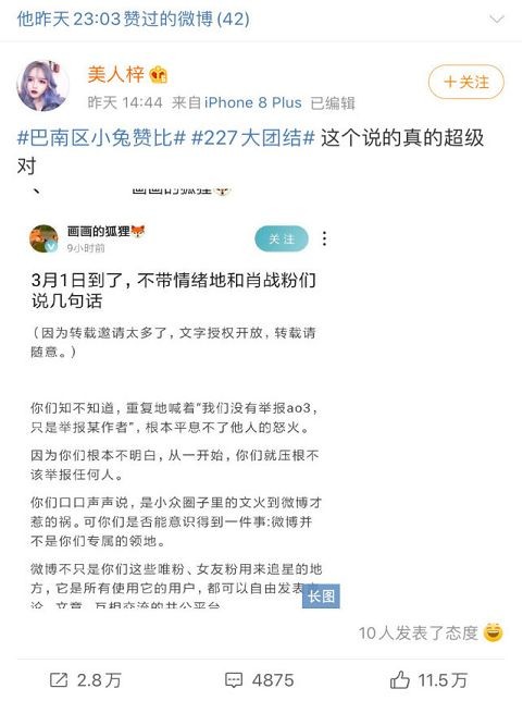 其实该粉丝之前都是正常的追星言论,看上去还是挺理性了,但是接二连三的有圈内人士下场表明态度,估计心态是心态完全崩了。