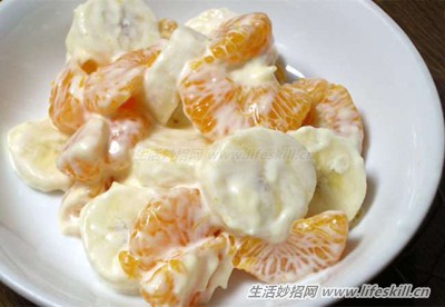 加在色拉里面的香蕉,推荐是使用比较酸、不太熟的香蕉来做!还有因为香蕉切开之后很快就会黑掉,所以可以加一点柠檬汁来达到调味以及防止香蕉变黑的效果。