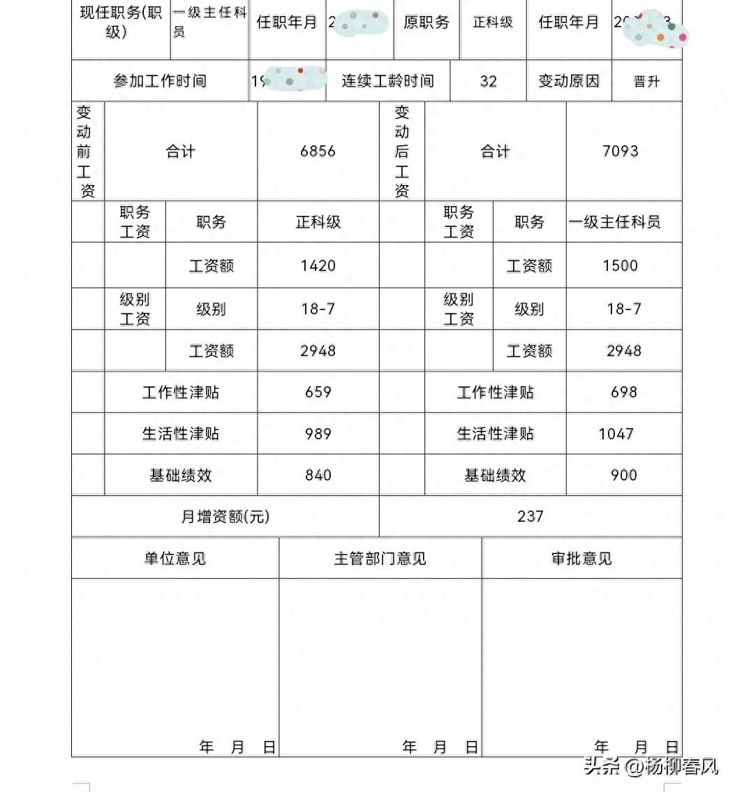 这样每月总计增长了237元。当然这位公务员工作年限较长,正科时间也较长,并且是部门一把手,原来工资档次也比较高,因此晋升了一级后,工资待遇提高的并不算多。