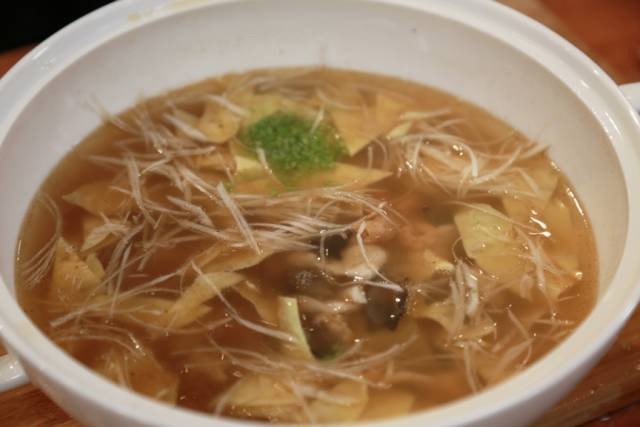 5. 然后小火将肉片下到汤中,泛白后即可盛出;
