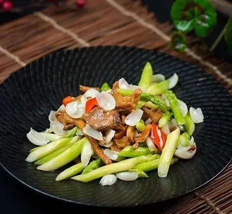 1. 芦笋拉油,落底味飞水备用;