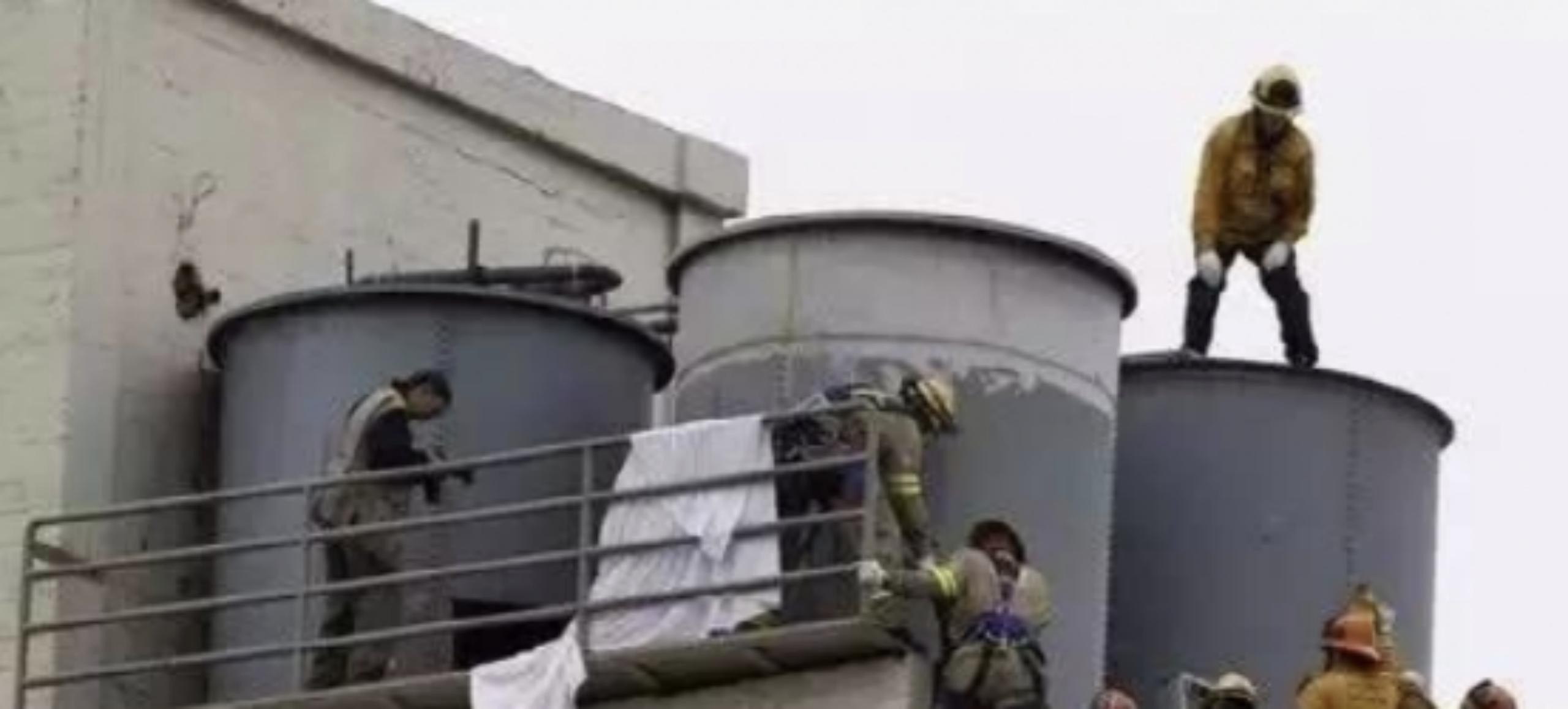 一名身高1.62米的小女孩爬上了3米高的水箱。这种事情很少见。