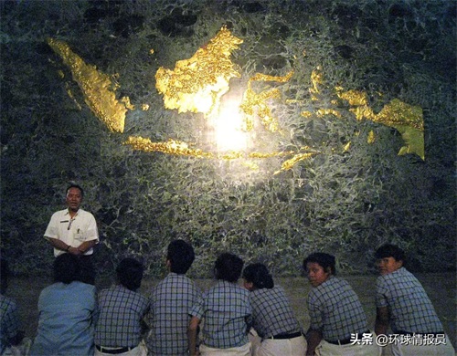 ▲“大印尼”地图前的印尼学生