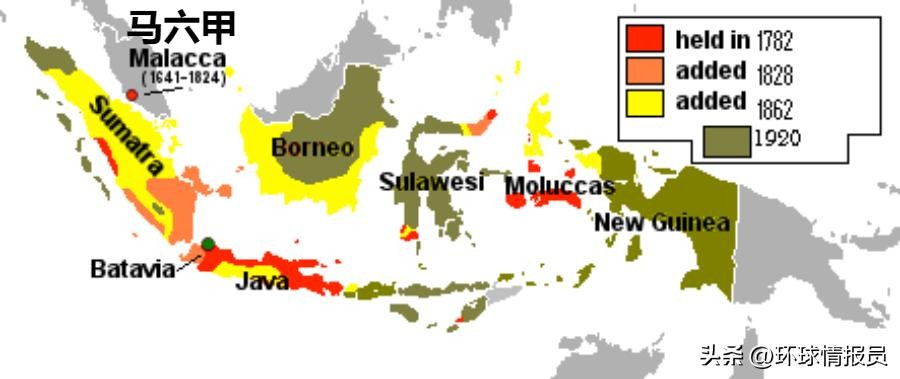 ▲荷兰在马来群岛获得殖民地的年份