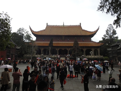圣帝殿的总高达到31.11米,比北京故宫太和殿还要高出4.19米。有人以此来证明南岳大庙如何如何了不起,连皇家都要其高看一眼。其实,决定一座建筑等级高低的,不仅仅是高度一个方面,还包括它的开间数量、台基高度等因素。譬如,太和殿的开间达到11间,而圣帝殿只有九间;太和殿台基的高度达到8.13米,而圣帝殿台基的高度只有2米。