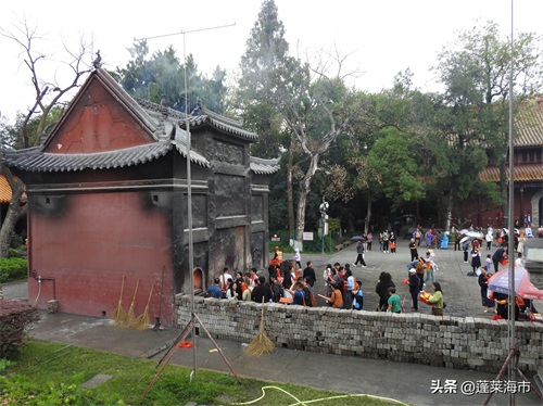 观察了一下那些烧香祈福的人,发现他们手里的香烛并没有在圣帝殿前点燃,而是在行过祭拜大礼之后,直接送到了两座焚帛炉里。如此一来,这焚帛炉还真得叫香炉才是。将香烛集中到一起焚烧,既安全又实现了一定程度的环保,是非常好的做法,应该加以推广。