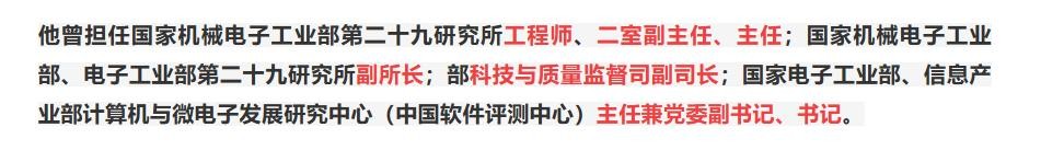 他在国家部委的工作晋升非常顺畅,最高做到信息产业部副部长,党组成员,妥妥的副部级官员,且是带有专业技术含量的干部。