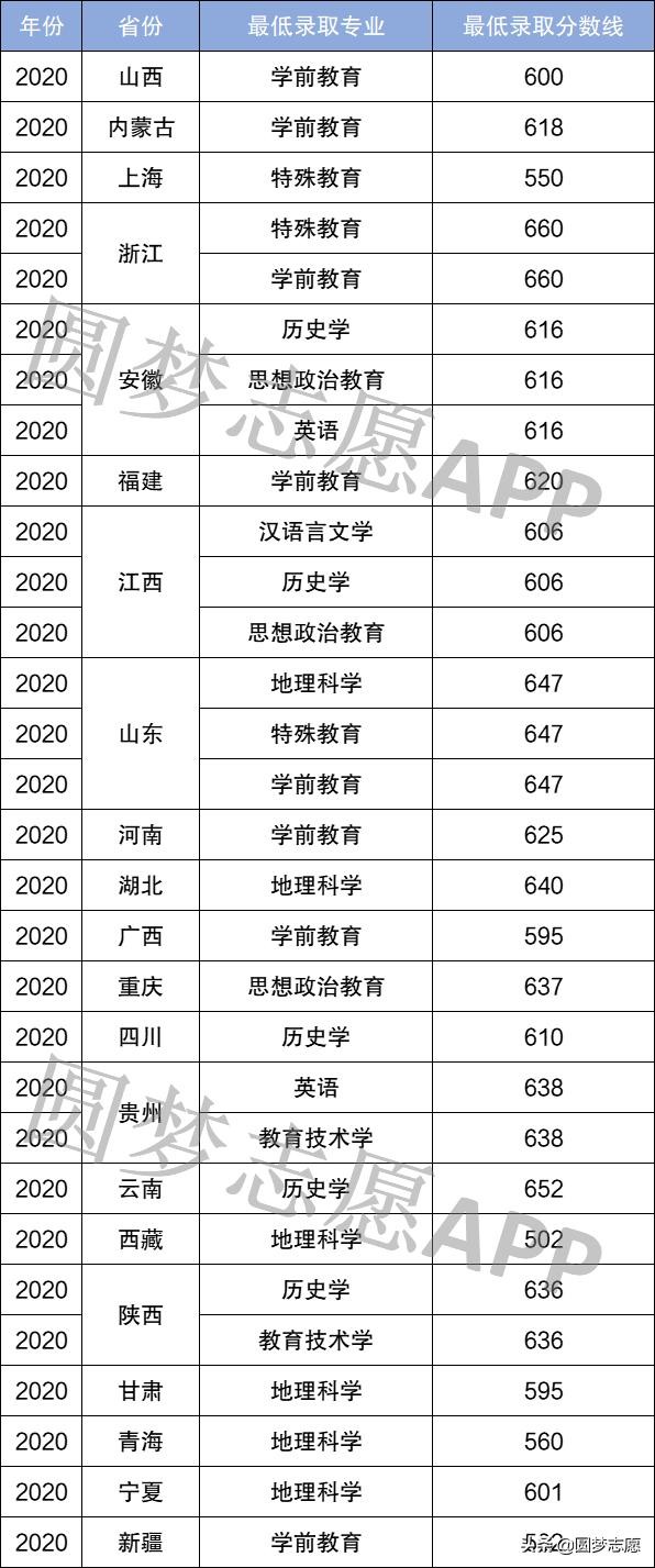从上表我们可以看出,华东师范大学公费师范生专业在各省的最低录取分数线都是在各省的一本线之上,也就是说,想要报考公费师范生专业的考生,不仅要学习成绩好,还要对师范类专业感兴趣才行。