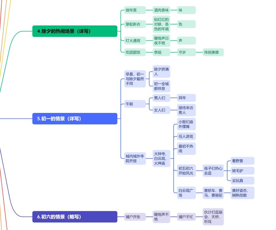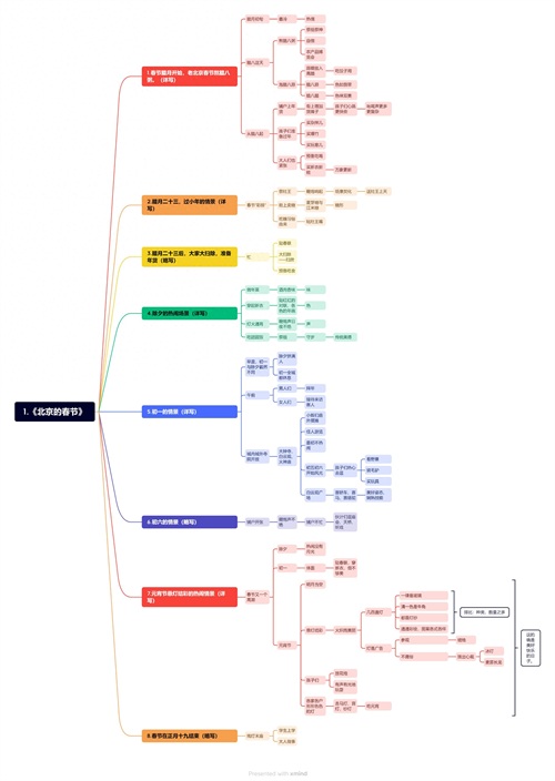 六年级的孩子,新学期必备!1.《北京的春节》助读助记思维导图。