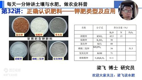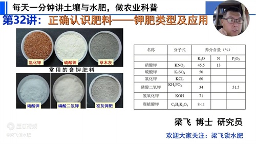 每天一分钟讲土壤与水肥,做农业科普。第32讲:正确认识肥料--钾肥类型及应用。