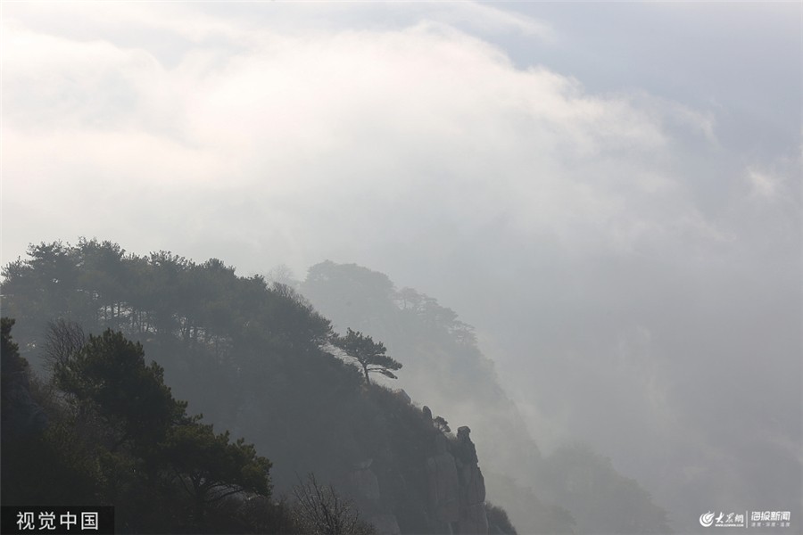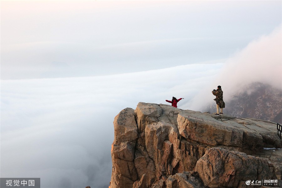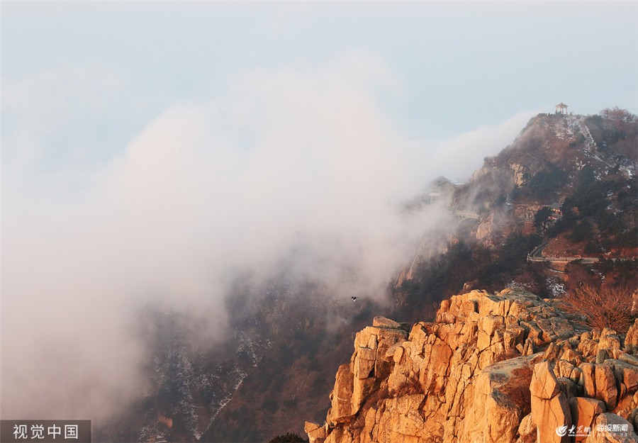 大众网·海报新闻泰安12月10日讯 2019年12月8日,山东泰安,初冬的泰山景色别致,吸引了众多游客前来游玩。图为泰山云海景色。图片作者:郭志华/视觉中国