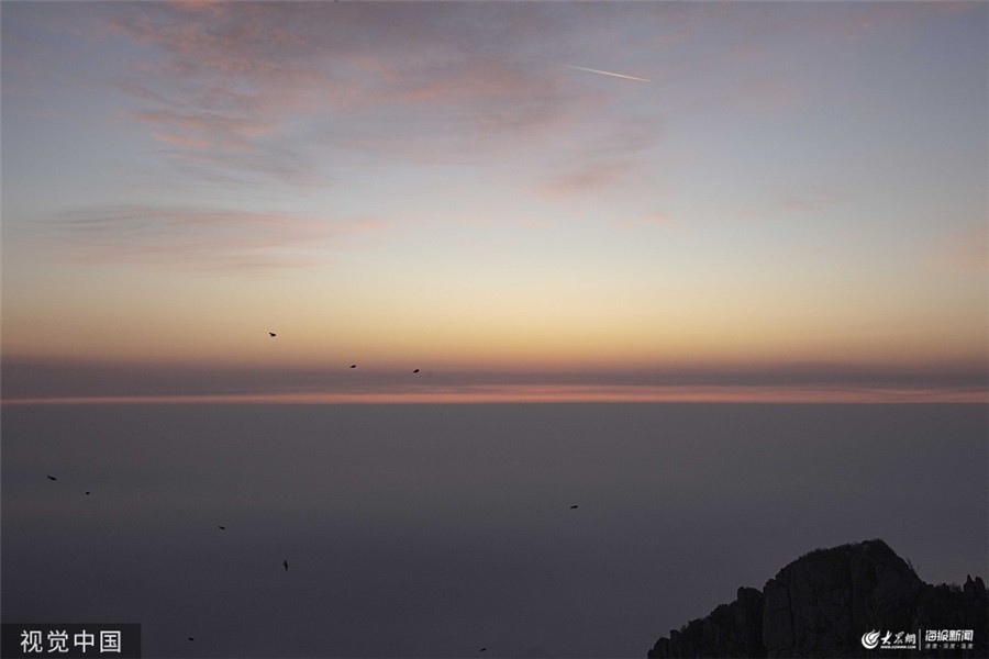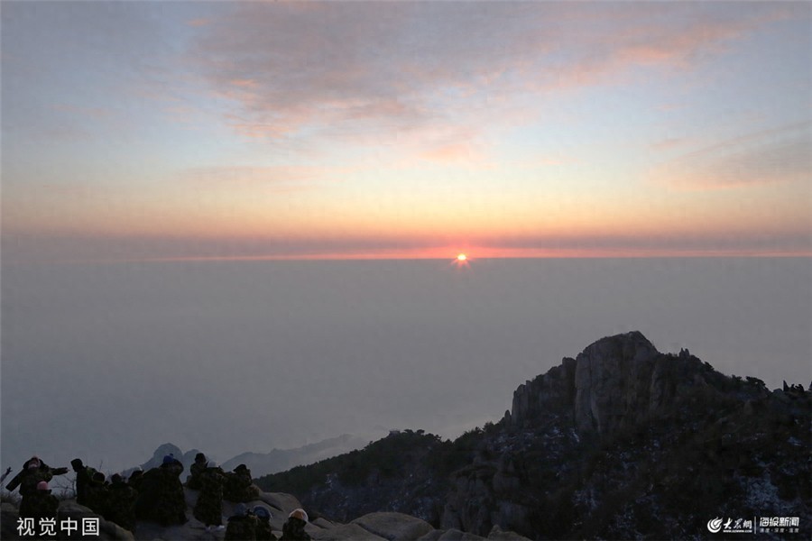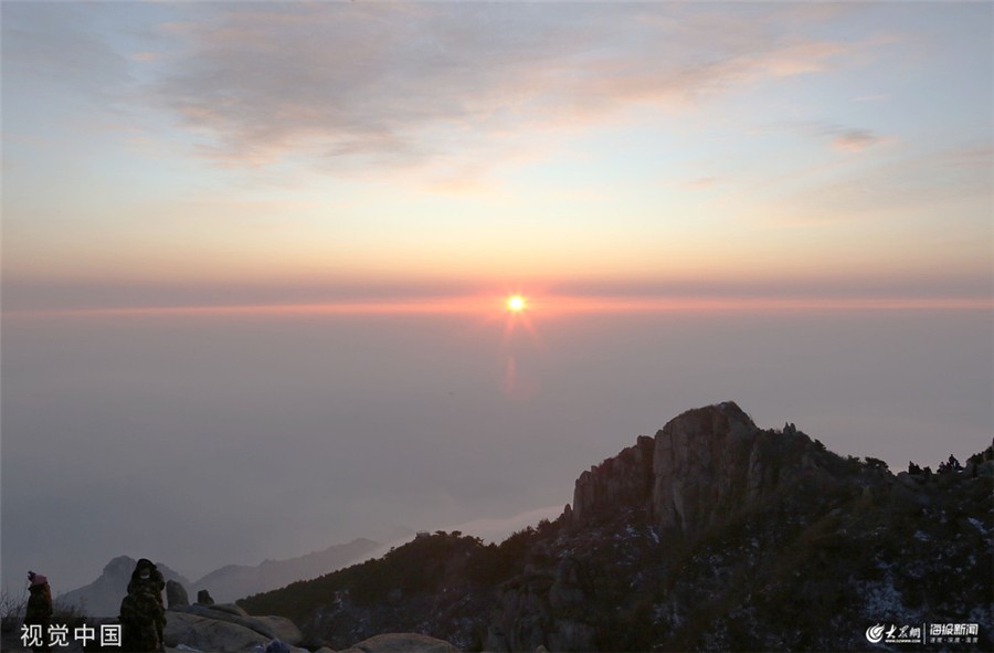 山东泰安:初冬泰山景色别致 日出云海醉游人