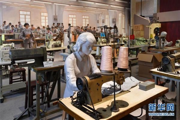 中国第一家“三来一补”企业太平手袋厂陈列馆复原当年生产车间的设备和劳动场景(6月24日摄)。 新华社记者 刘大伟 摄