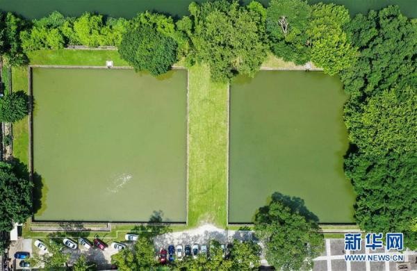 这是位于鸦片战争博物馆馆区的销毁鸦片烟池遗址(6月23日摄,无人机照片)。 新华社记者 刘大伟 摄