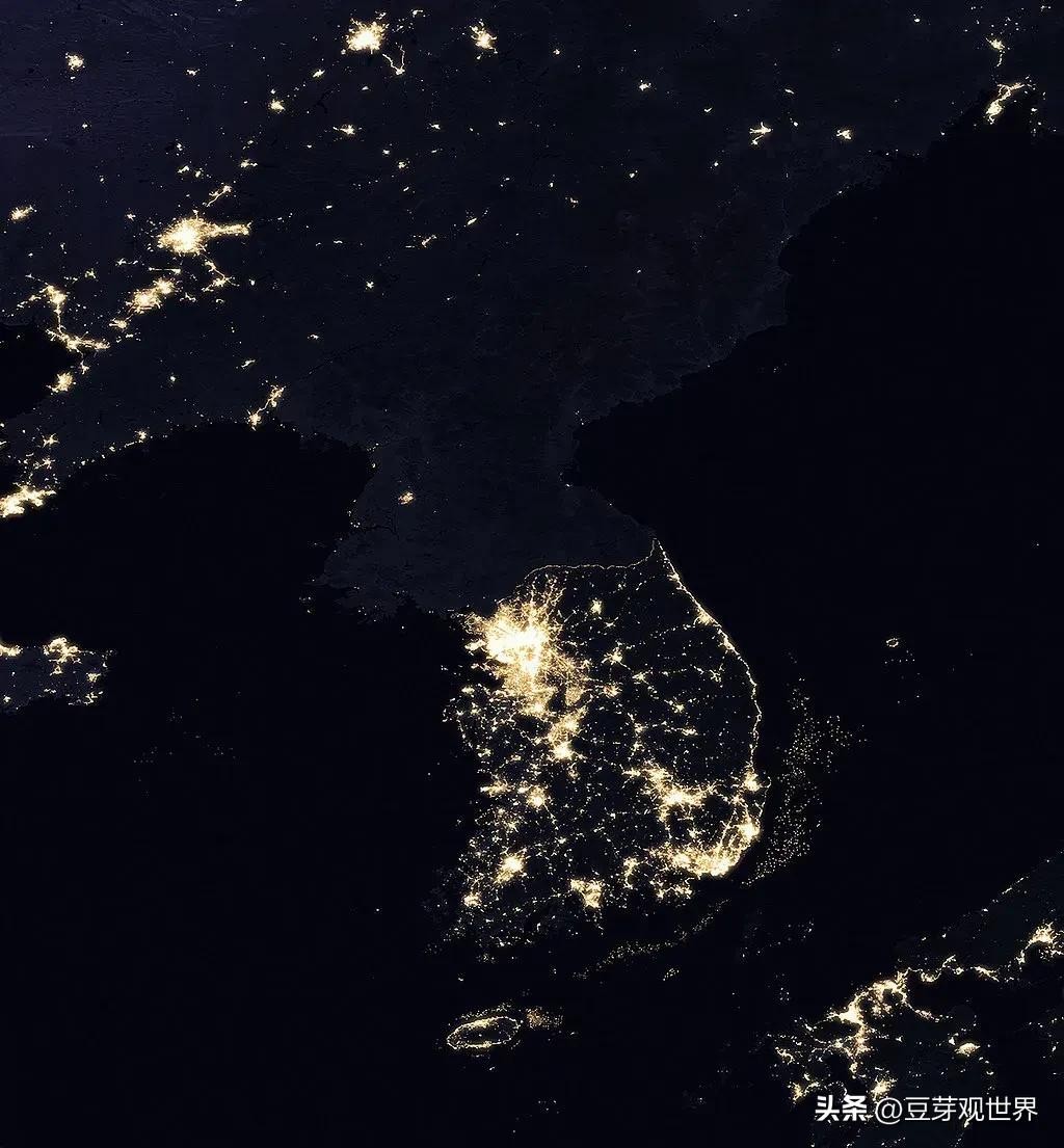 朝鲜半岛夜晚灯光
