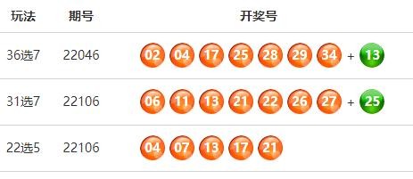 中国体育彩票福建31选7第22106期开奖公告