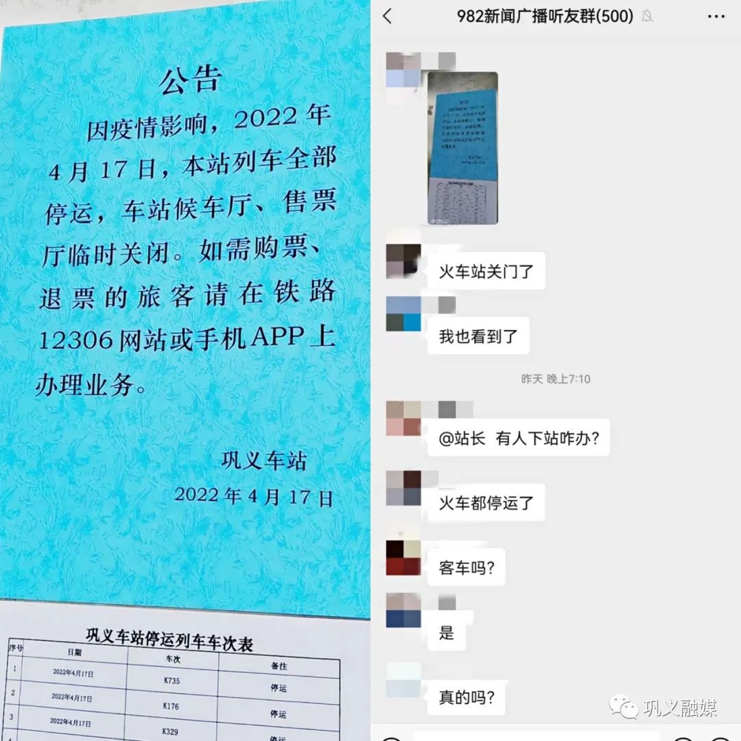 一条“巩义火车站列车停运”的消息
