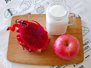 用料:食材:(2人份),火龙果1/2个,苹果1个,牛奶400ml (材料可以酌情调整)