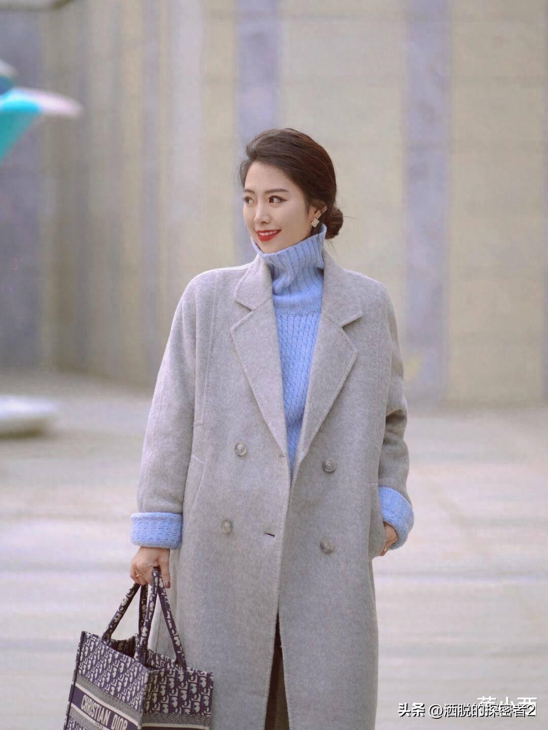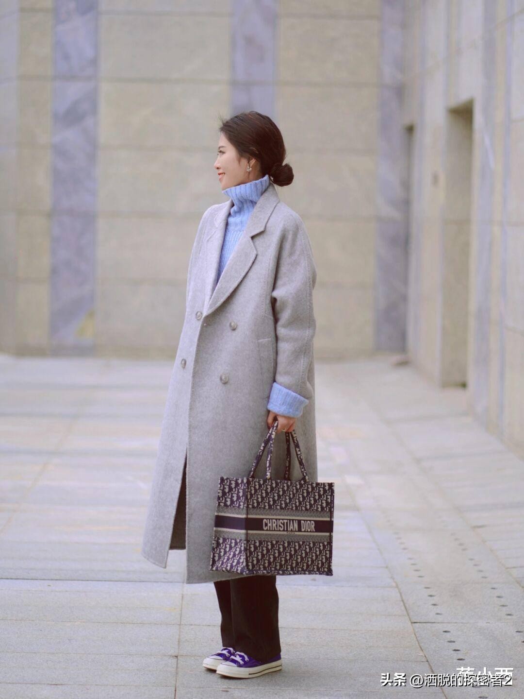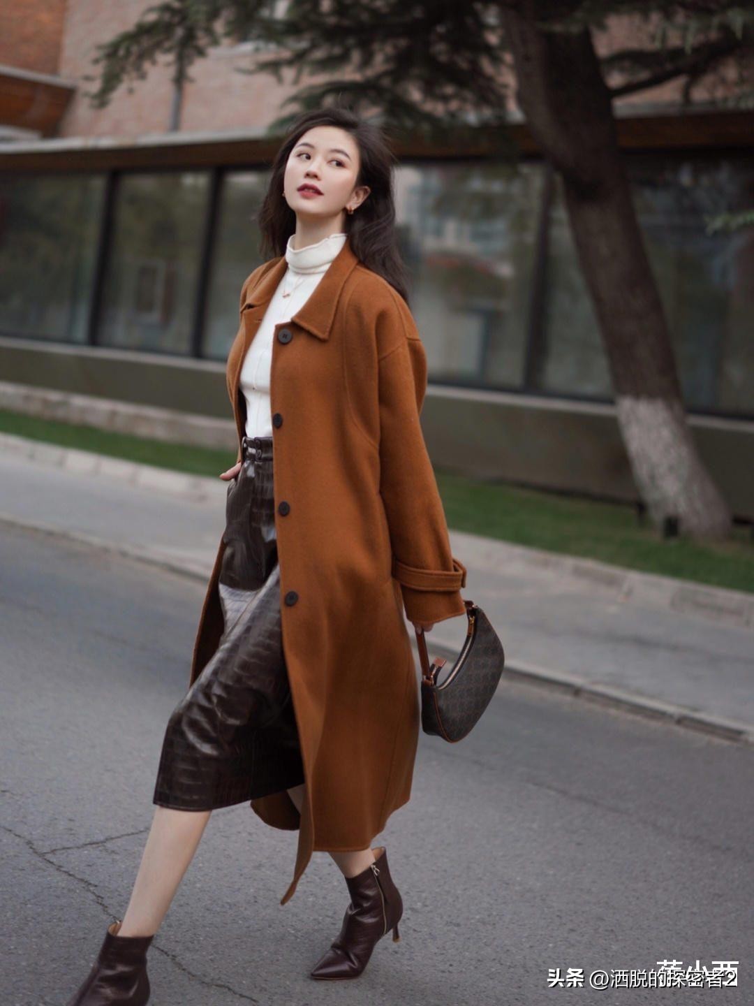 如果你想实现时尚与保暖的双重结合,也可以尝试今年秋季流行的“大衣+高领”组合。