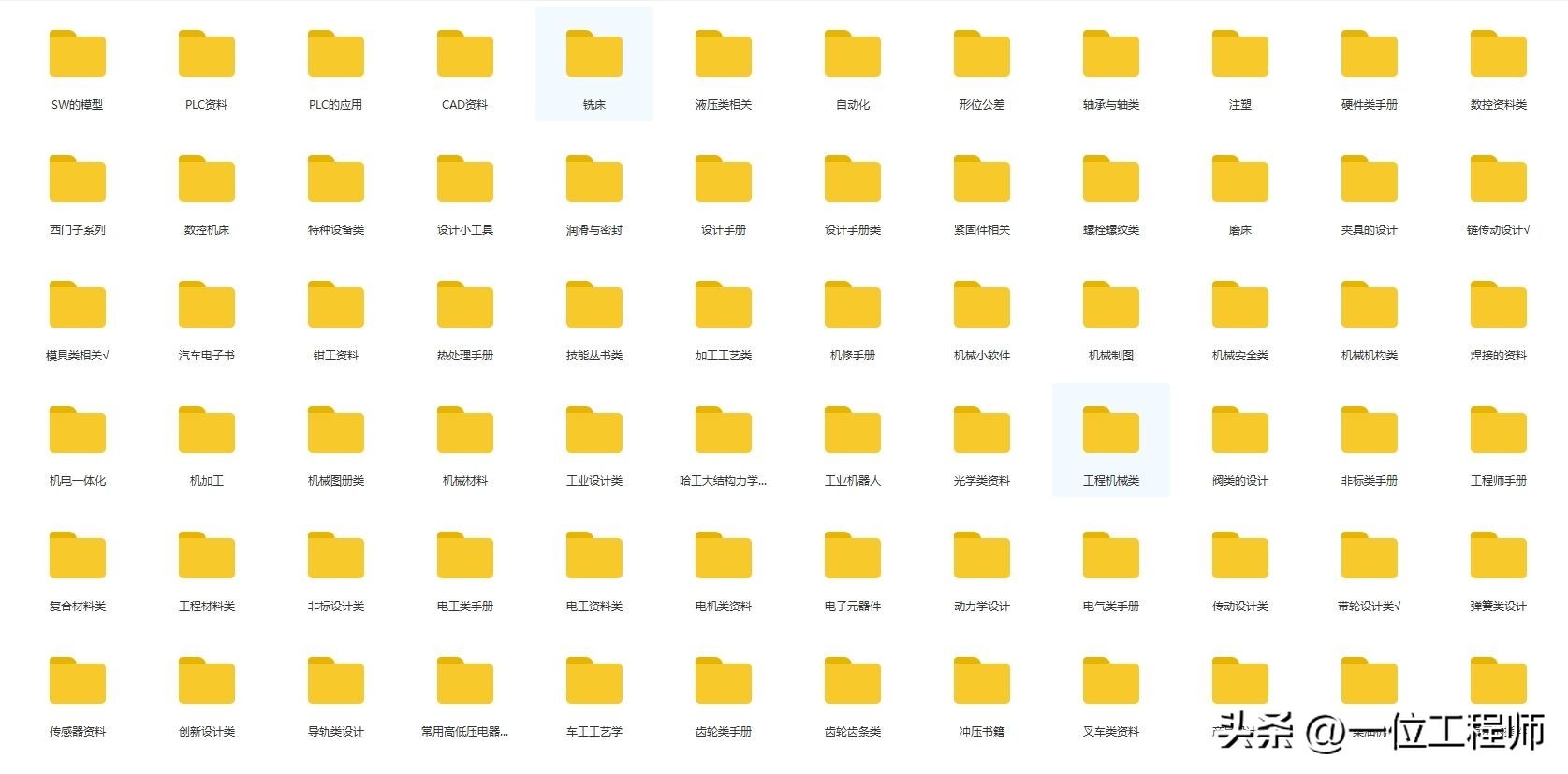 具体内容有:文档手册类(千余份工程师设计手册、机械设计手册、机电相关手册、液压类手册、自动化类手册、材料成型手册、非标设计手册等等,所有历史文章的PPT源文件等)。