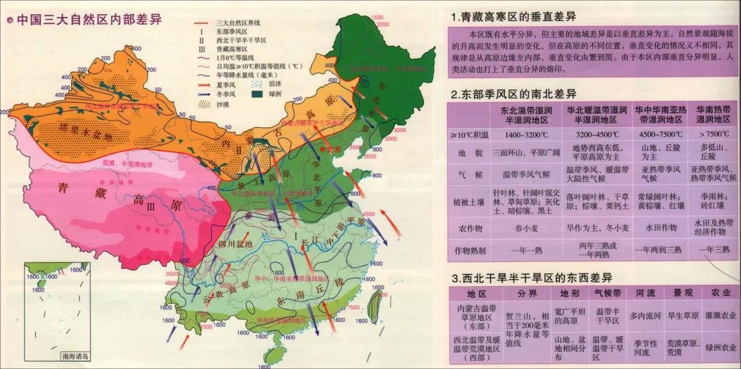 5、中国三大自然区内部差异