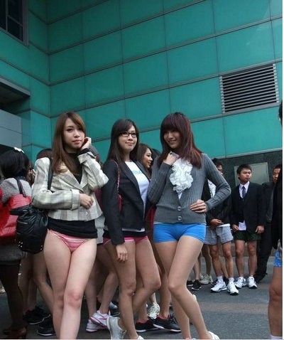 2012年2月,一家运动品牌邀请一群年轻男女,在台北东区街头模仿海外"无裤日"活动,成功吸引众人目光。