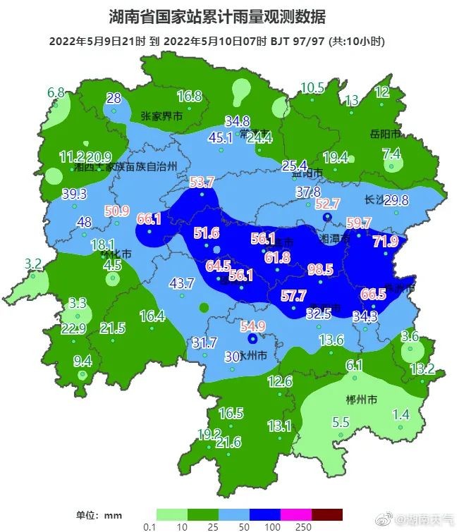 5月9日开始,湖南遭遇新一轮强降水过程,预计未来一周中部和南部地区雨日雨量偏多,并伴有强对流天气。