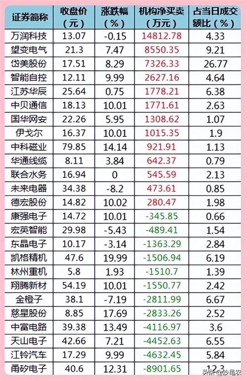 ▊龙虎榜机构资金动向